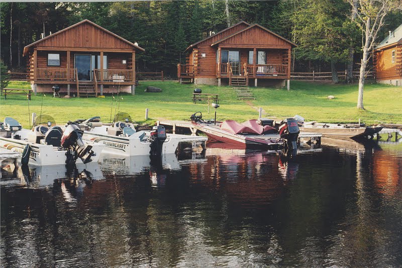 | Our cabin is the one on the right. On our last trip we were so busy fishing, we never turned on the cable television. |